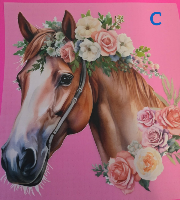 A. Horse Girl/ B. Horse with Flowers / C.
